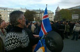 Um þúsund manns á Austurvelli Um þúsund hundruð manns eru nú samankomnir á Austurvelli, margir með kröfuspjald í hönd þar sem vakin er athygli á bágum kjörum fólksins í landinu. 1.10.2010 13:15