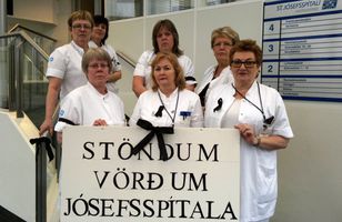 „Hér ríkir bara sorg“ „Fólk er með sorgarbönd og það er flaggað í hálfa stöng," segir Þórunn Káradóttir Hvasshovd. Hún gegndi stöðu yfirgeislafræðings á röntgendeild St. Jósefsspítala í Hafnarfirði. Spítalinn sameinaðist Landspítalanum í dag og er rekinn undir heiti þess síðarnefnda. Þórunn hefur þó enn ekki fengið nýtt stöðuheiti. „Ég veit ekki hvaða titil ég ber nú en ég var yfirgeislafræðingur," segir hún. 1.2.2011 14:58