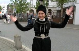 Fyrrverandi ballettmær í faldbúningi Íslendingar voru flestir flottir í tauinu í dag en fyrrverandi balletmær bar þó af þeim flestum. Hugrún Halldórsdóttir hitti og ræddi við þessa einstaklega prúðbúnu konu í dag. Unnur Guðjónsdóttir, fyrrverandi balletmeistari Þjóðleikhússins, mætir iðulega í íslenska þjóðbúningnum niður í bæ á þjóðhátíðardaginn sjálfan, en í ár var hún sérstaklega prúðbúin. „Ég er núna í sérstaklega fallegum búningi af því þetta er faldbúningur en annars er eg vön að fara í upphlut. 0g hver er munurinn á þessum tveimur? Það er náttúrulega höfuðfatið, þetta er það sem kallað er faldur og þessi hringur um hálsinn, kraginn. Þetta er mikið eldri búningur en upphluturinn," segir hún. Unnur saumaði búninginn sjálf en silfrið lét hún smíða eftir munum úr þjóðminjasafninu. Þá ber hún spaða á höfði úr silfri en hann er vanalega úr taui. „Ég vil hafa þetta almennilegt. Og vekurðu ekki athygli? Jú jú, fólk er að spá í þetta. Mér finnst bara synd að það skuli ekki vera miklu fleiri í búningum. Ég meina ef ekki í dag, 200 ára fæðingarafmæli Jóns, nema hvað?" 17.6.2011 22:00