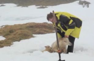 Bjargaði kind og lömbum úr sjálfheldu í kafasnjó "Hún brosti við mér þakklát“ segir Börkur Hrólfsson leiðsögumaður sem bjargaði kind úr sjálfheldu í kafsnjó í gær. Kindin reyndist ekki ein á ferð í vetrarríkinu fyrir austan. 19.6.2011 19:34