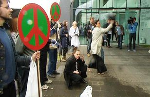 Friðarsinnar köstuðu skóm - skíðaskór voru bannaðir Friðarsinnar fjölmenntu við Öskju, náttúrufræðihús Háskóla Íslands, í dag og köstuðu skóm til að lýsa yfir andúð sinni á varaframkvæmdastjóra Nató, Claudio Bisogniero, sem hélt þar erindi í hádeginu. Samtök hernaðarandstæðina leituðu þarna í hugmyndasmiðju blaðamannsins Muntazer al-Zaidi frá Írak sem vakti athygli fyrir nokkrum misserum þegar hann sýndi andúð sína á hernámi Bandaríkjamanna með því að kasta skóm sínum í átt að George W. Bush forseta. „SHA vilja þó árétta að samtökin eru ekki hlynnt því að skóm sé kastað í fólk og dýr. Þess vegna verður komið upp sérstökum skókastbökkum fyrir utan Öskju. Brúklegir kastskór verða á staðnum, þótt gestum sé vitaskuld heimilt að koma með sína eigin skó. (Skíðaskór, tréklossar og skór með stáltá bannaðir.)," sagði í hvatningu samtakanna fyrir mótmælin. Að mati Samtaka hernaðarandstæðinga er Nató „árásargjarnt hernaðarbandalag sem hefur þann tilgang að tryggja hagsmuni nokkurra af ríkustu og voldugustu þjóðum heims og ber ábyrgð á miklum hörmungum víða um lönd." 1.7.2011 14:24