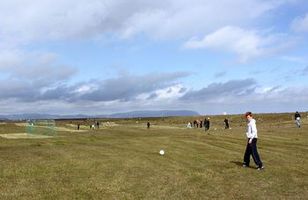 Átján holu fótboltagolfvöllur opnaður „Það hafa stundum verið settar upp þrautir, nokkrar holur, sem hafa verið uppi í nokkra daga, en þetta er fyrsti átján holu völlurinn," segir Sveinbjörn Ásgrímsson hjá Ölfus sporti. Fyrirtækið hefur opnað í Þorlákshöfn fyrsta fótboltagolfvöllinn á landinu. 1.7.2011 07:00
