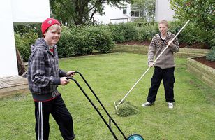 Snjallir strákar slá garða í sumar Þorgils Baldursson, Aron Sævarsson og Ýmir Gíslason eru 14 ára bekkjarfélagar úr Hlíðaskóla. Þá langaði hreint ekki til að vera aðgerðarlausir í sumar og tóku til sinna ráða. "Mér datt bara í hug að fara að slá garða og þeir voru til í að vera með mér í því,“ segir Þorgils. Þeir félagarnir fengu lánaða sláttuvél og klippur og voru þá tilbúnir í slaginn. 5.7.2011 14:00