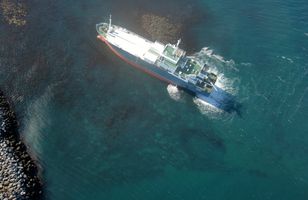 Strand Fernanda í myndum Þyrla Landhelgisgæslunnar náði þessum myndum af strandstað flutningskipsins Fernanda í innsiglingunni í Sandgerði fyrr í dag. 5.5.2012 15:16