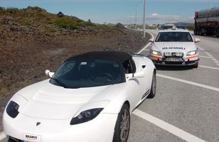 Rafbíll tekinn á 124 km hraða "Ég gleymdi mér í góða veðrinu," segir Gísli Gíslason, forstjóri Northern Light Energy. Hann var í gær fyrstur allra til að vera tekinn fyrir of hraðan akstur á rafbíl á Íslandi. Gísli gerir ekki lítið úr alvarleika atviksins og hvetur aðra ökumenn til að fara varlega í umferðinni. Gísli ekur á sportlegum Tesla Roadster-rafbíl og segir hann lögreglumennina hafa verið hissa á því að bíll knúinn áfram af íslenskri orku skyldi ná þessum hraða. Þeir mældu hann á 124 km hraða á Reykjanesbrautinni. 5.6.2012 21:00