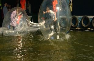 Risastórar "hamstrakúlur“ fyrir börn Nýtt skemmtitæki fyrir börn var tekið í notkun í Fjölskyldugarðinum um helgina. Skemmtitækið minnir á hlaupakúlur fyrir ofvaxna hamstra. Börn geta svo skriðið inn í kúlurnar og hlaupið innan í þeim yfir vatnstjörnina í garðinum. 10.6.2012 20:23