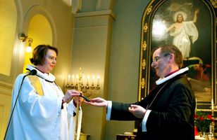 Nýr biskup tekinn við lyklavöldum Prestastefnu lauk í dag með athöfn í Dómkirkjunni. Að lokinni guðþjónustu og altarisgöngu afhenti Karl Sigurbjörnsson,fráfarandi biskup Íslands, nývígðum biskupi, Agnesi Sigurðardóttur, lykla embættisins. Agnes biskup mun formlega hefja störf á biskupsstofu á mánudaginn næstkomandi, en hún var vígð í embættið síðastliðinn sunnudag. 27.6.2012 15:26