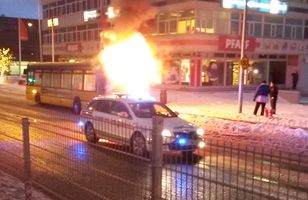 Eldur í strætó á Grensásvegi Eldur kom upp í strætisvagni fyrir framan verslunina Pfaff, á horni Grensásvegs og Miklubrautar, fyrr í dag. Eldsupptök ókunn. 6.12.2014 10:14