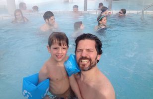 Borgarstjóri vígði braut með börnum sínum Dagur B. Eggertsson borgarstjóri vígði nýja vatnsrennibraut í Árbæjarlaug með því að renna sér fyrstu ferðina ásamt börnum sínum. 28.3.2015 19:59