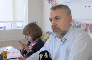 Erfiðara að eignast barn með sjaldgæfan sjúkdóm hér en í nágrannalöndunum Faðir níu ára gamallar stúlku, sem er sú eina á Íslandi sem þjáist af taugasjúkdóminum AHC, segir að mun erfiðara sé að eignast barn með sjaldgæfan sjúkdóm á Íslandi en í nágrannalöndum okkar. Viðeigandi þekking sé ekki til staðar og því hafi fjölskyldan oft íhugað að flytja úr landi. 2.3.2015 19:30