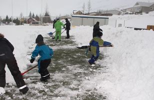 Allt á kafi í snjó fyrir austan: Bæjarbúar þurfa hreinsa knattspyrnuvöll fyrir blakmót Bæjarbúar í Neskaupstað berjast nú við það að hreinsa fótboltavöll bæjarins vegna yfirvofandi öldungamóts í Blaki, sem hefst á fimmtudaginn. 28.4.2015 14:15