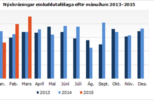 Gjaldþrot einkahlutafélaga hafa dregist saman Nýskráningum einkahlutafélaga hefur fjölgað á sama tíma og gjaldþrotum fækkar. 28.4.2015 10:12