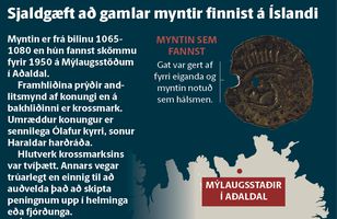 Mynt frá 11. öld skilað sextíu árum eftir fund Fréttaflutningur af fundi forns sverðs í síðustu viku varð til þess að fyrrverandi hafnarvörður skilaði mynt frá 11. öld til minjavarðar. Myntin fannst í Aðaldal skömmu eftir síðari heimsstyrjöldina. 12.9.2016 06:45