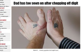 Með stóru tána í stað þumalfingurs Það eru ekki allir sem deyja ráðalausir þegar þeir lenda í slysum. Það má með sanni segja að hinn 29 ára gamli James Byrne falli í þennan flokk eftir að hann sagaði af sér þumalputtann þegar hann var að saga við fyrir tveimur árum síðan. 1.12.2011 11:27
