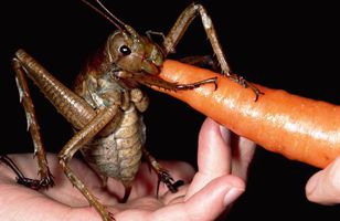 Fann stærsta skordýr veraldar Náttúrunnandi fann stærsta skordýr veraldar á Nýja-Sjálandi. Paddann gæddi sér á gulróta úr lófa hans. 1.12.2011 22:00