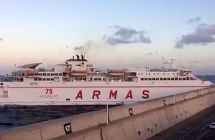Fönguðu augnablikið þegar ferja sigldi inn í varnargarð á Kanaríeyjum Tæknilegir örðugleikar ollu því að ferja sem flutti 140 manns sigldi inn í varnagarð á Las Palmas í gær. 22.4.2017 16:49