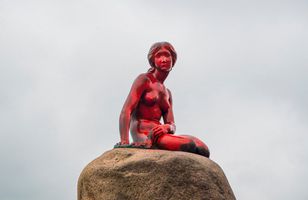 Litla hafmeyjan máluð rauð í nótt Hafmeyjan var máluð rauð að því er virðist til að mótmæla grindhvaladrápi Færeyinga. 30.5.2017 08:23