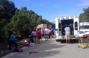 Tólf létu lífið þegar rúta valt í Mexíkó Rúta full af ferðamönnum valt á þjóðvegi í Quintana Roo í Mexíkó í gær. 20.12.2017 08:57