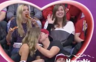 Át pizzu af miklum ákafa og sló í gegn á netinu Kona stal senunni af ungu pari í svokallaðri „kiss cam“. 20.4.2016 22:57
