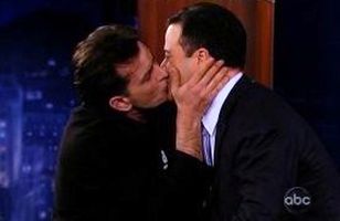 Ekki er þetta sleikur Charlie Sheen? Leikarinn Charlie Sheen mætti öllum að óvörum í spjallþátt Jimmy Kimmel í gærkvöldi á sjónvarpsstöðinni Abc. Leikarinn kyssti þáttastjórnandann eftirminnilega eins og sjá má í myndskeiðinu. Nýjustu fregnir úr Hollywood herma að Charlie verði mögulega endurráðinn í sjónvarpsþáttinn vinsæla Two and a Half Men. Gustað hefur um stjörnuna síðustu vikur eftir að hann hellti sér yfir framleiðendur þáttanna. 22.3.2011 11:51