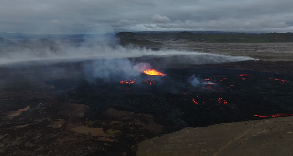 Hræ af hvalskálfi vakti athygli vegfaranda við ströndina við Innri Njarðvík í gær. Hvalurinn virðist hafa hafa flækst í línu af veiðarfærum og hlotið slæman dauðdaga. Hræið virðist vera af Hnúfubaki en hann virðist hafa flækst í veiðarfærum með þeim afleiðingum að lína vafðist utan um höfuð hans. Fullorðnir hvalir syntu við hræið sem var farið að bólgna upp þegar myndir af því voru teknar. Hvalirnir syntu svo áleiðis á haf út.