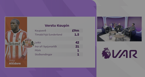 Leeds og Bournemouth gerðu 2-2 jafntefli í ensku úrvalsdeildinni í fótbolta. Antoine Semenyo skoraði eitt marka leiksins með skoti undir varnarvegg Leeds, þrátt fyrir að á bakvið vegginn lægi varnarmaður.