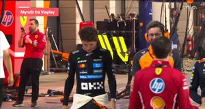 Mikil spenna eftir að Sainz skall í vegginn Klaufalegt slys skapaði mikla spennu í tímatökunni fyrir Singapúrkappaksturinn í Formúlu 1 í dag. 175 21. september 2024 18:56 01:27 Formúla 1