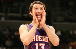 Nash með 23 stoðsendingar í sigri Phoenix Phoenix Suns er komið í afar vænlega 3-1 stöðu í einvígi sínu við LA Lakers í úrslitakeppni NBA deildarinnar. Phoenix vann sannfærandi sigur 113-100 í Los Angeles í kvöld þar sem Steve Nash var nálægt því að slá metið yfir flestar stoðsendingar í leik í úrslitakeppni. Körfubolti 29. apríl 2007 23:35